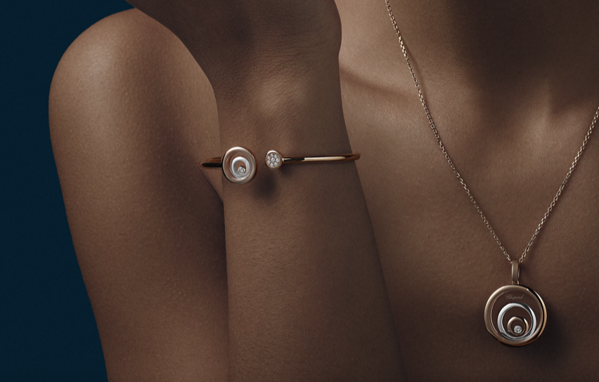 БРАСЛЕТ *CHOPARD* HAPPY SPIRIT 858230-9002/РОЗОВОЕ И БЕЛОЕ ЗОЛОТО/ПЛАВАЮЩИЙ БРИЛЛИАНТ 0.05ct