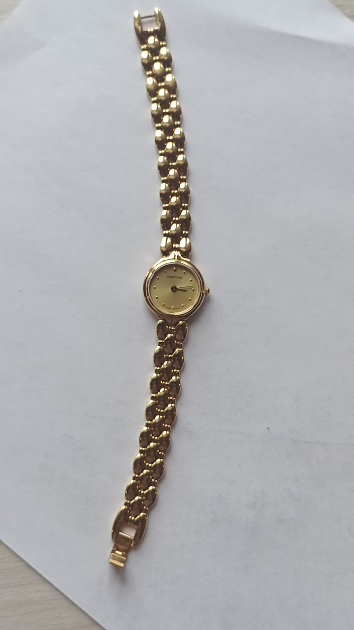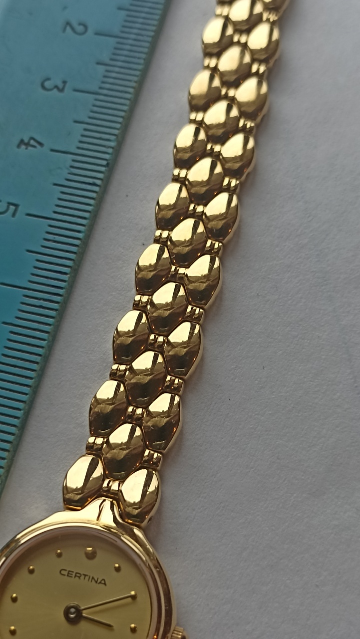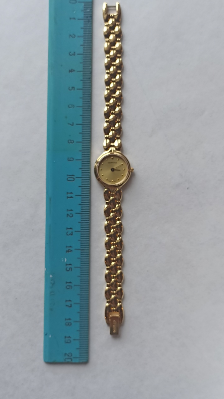 Certina Gold, swiss, браслет, 21 мм, сапфир, PVD, кварц