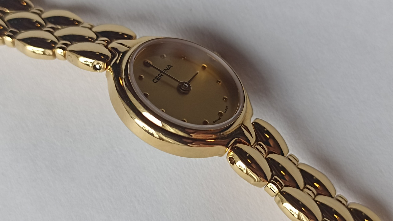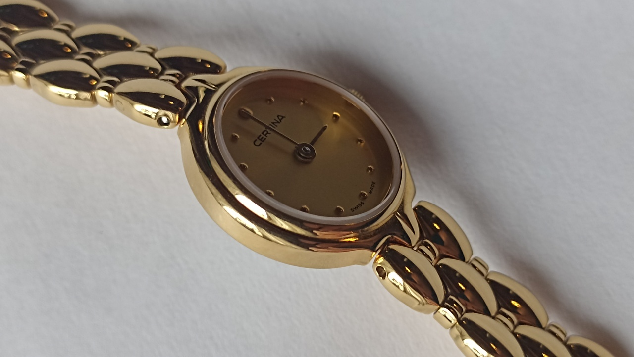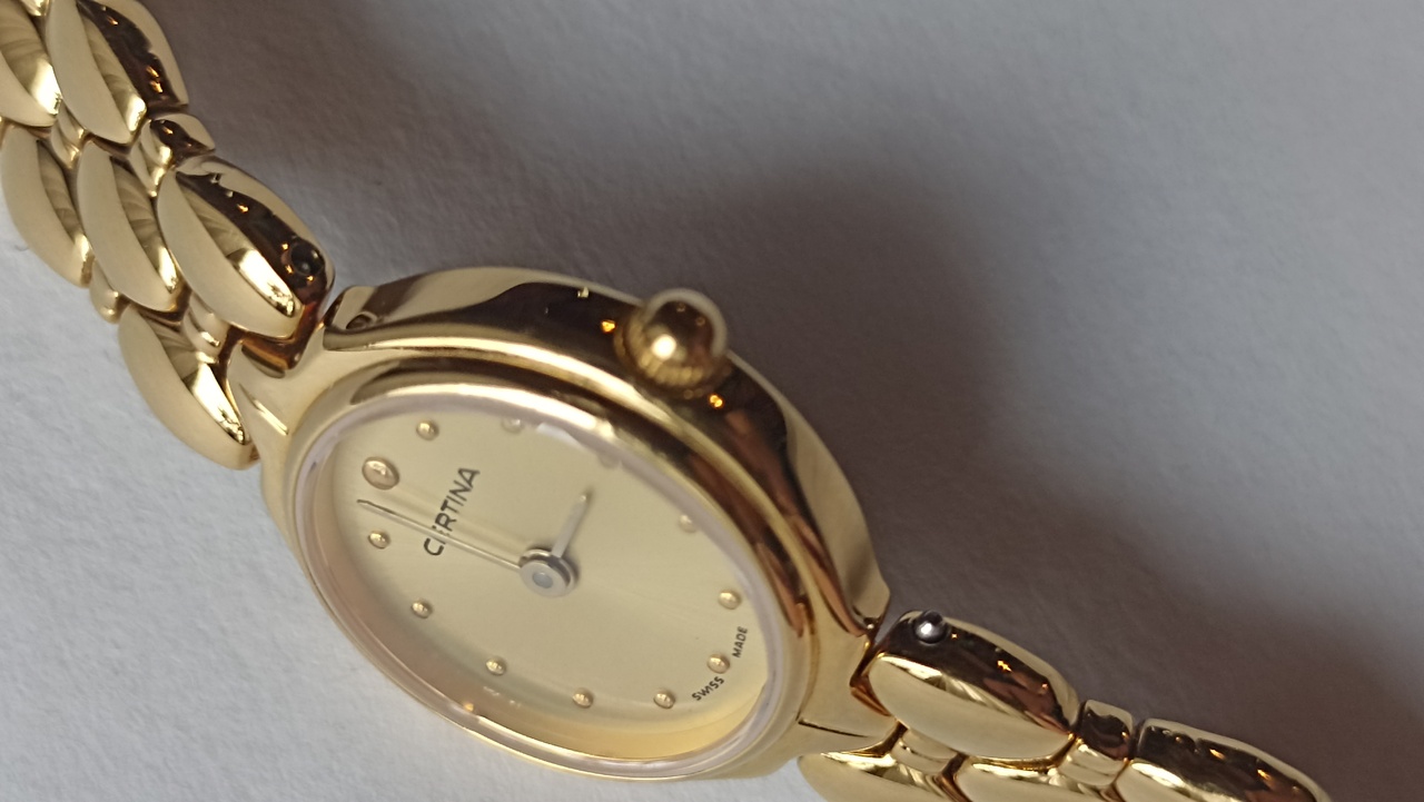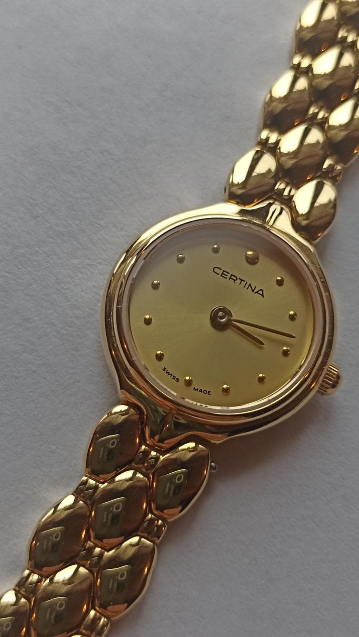 Certina Gold, swiss, браслет, 21 мм, сапфир, PVD, кварц