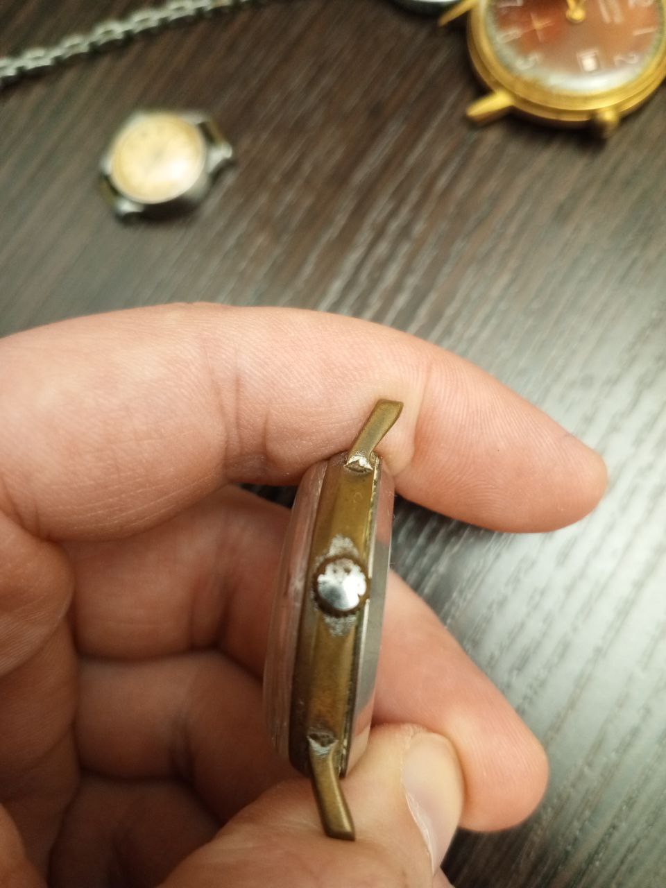 4. Часы "Slava". Видимо, родной браслет. Имеется неинформативная гравировка на задней стенке, а на ремешке имеется тиснение с ценой.
