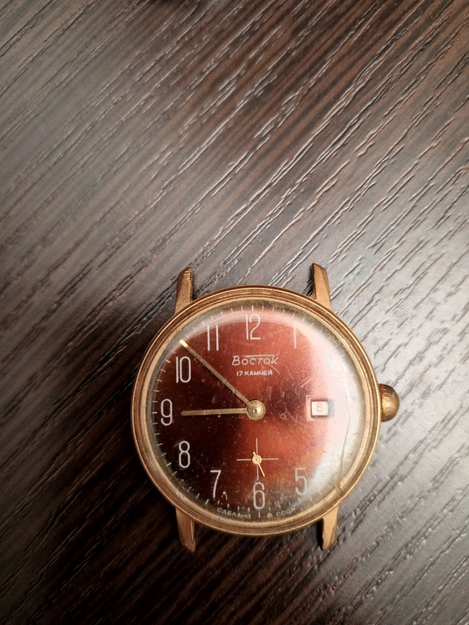 2. Часы "Восток". Без ремешка. На задней стенке присутствует гравировка. Часы исправно ходят. Треснуто стекло.