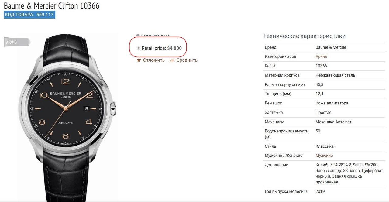 Дополнение: Задняя крышка непрозрачная. Часовые метки и арабские цифры изготовлены из золота