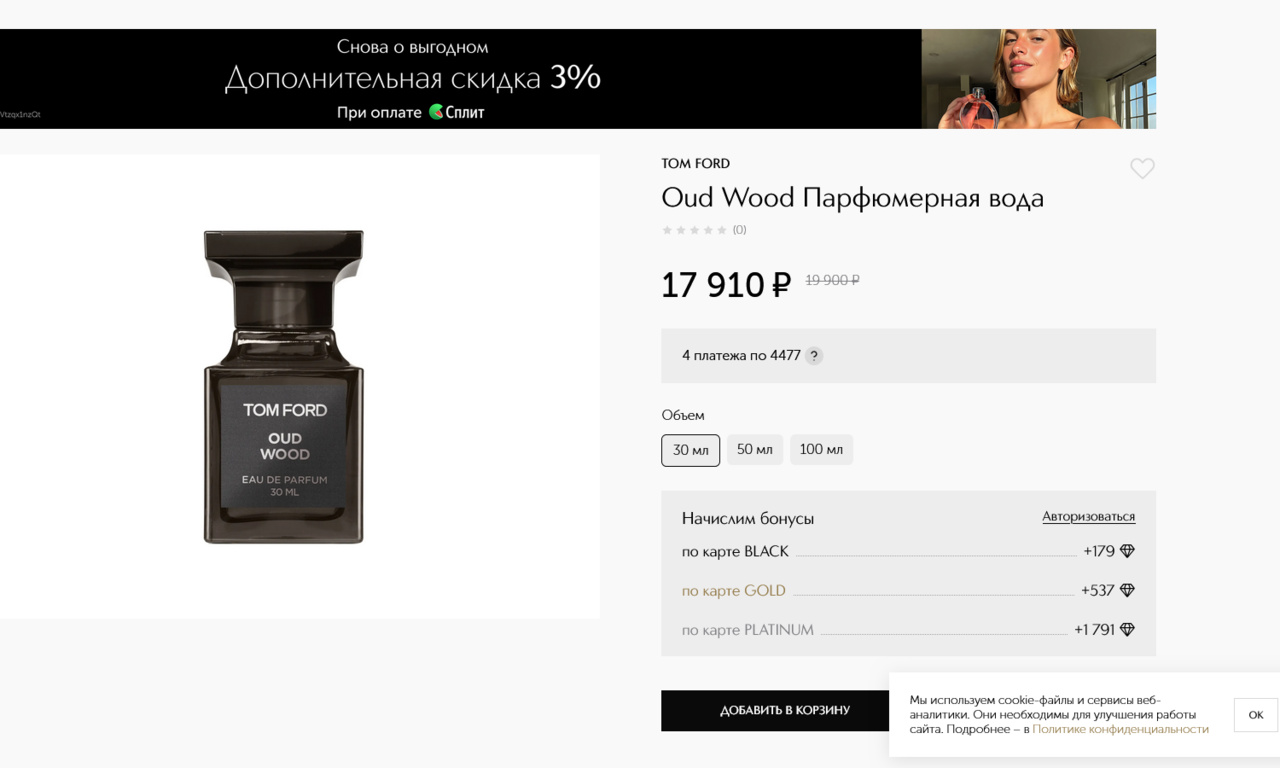 TOM FORD Oud Wood - культовый мужской парфюм (абсолютно новый, в слюде)