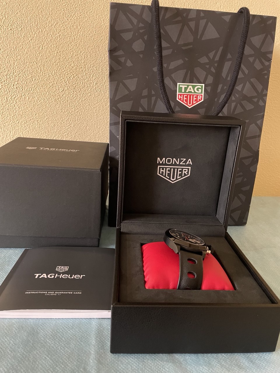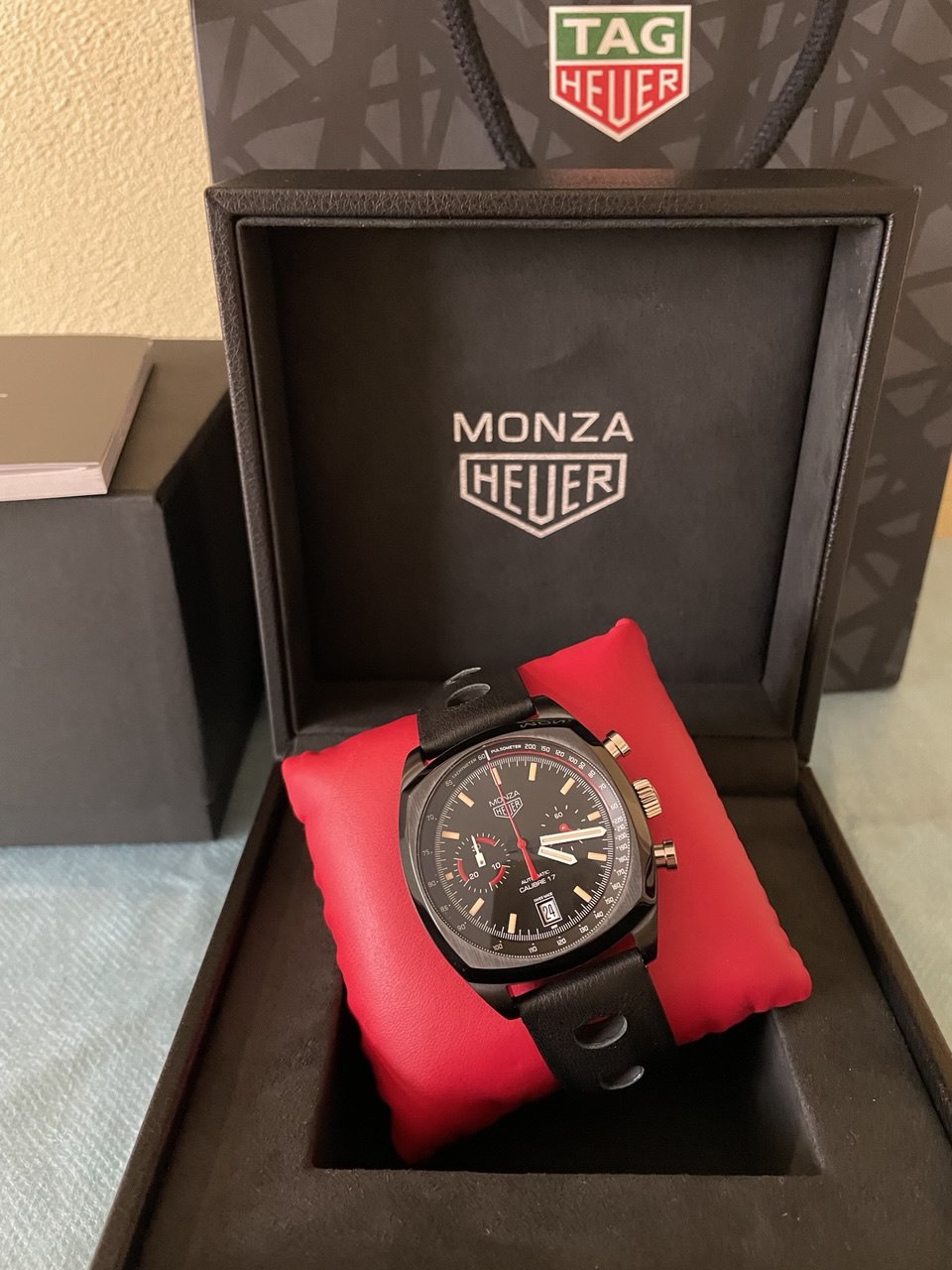 Cпециальная серия часов TAG Heuer Heritage Calibre 17 Monza Edition – это лимитированный выпуск, сочетающий в себе винтажный дизайн и современные технологии. Корпус из легкого и прочного титана диаметром 42 мм имеет необычную форму квадрата с выпуклыми скругленными сторонами. Ремень из черной кожи дополнен широкими круглыми отверстиями, застежка выполнена из титанового сплава.