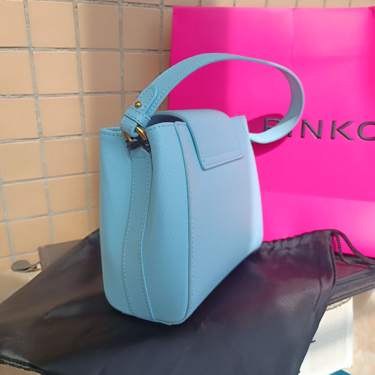 Женская сумочка от люксового, итальянского бренда PINKO//PINKO TENENTE TOP HANDLE CELESTE//натуральная кожа//небесного цвета//