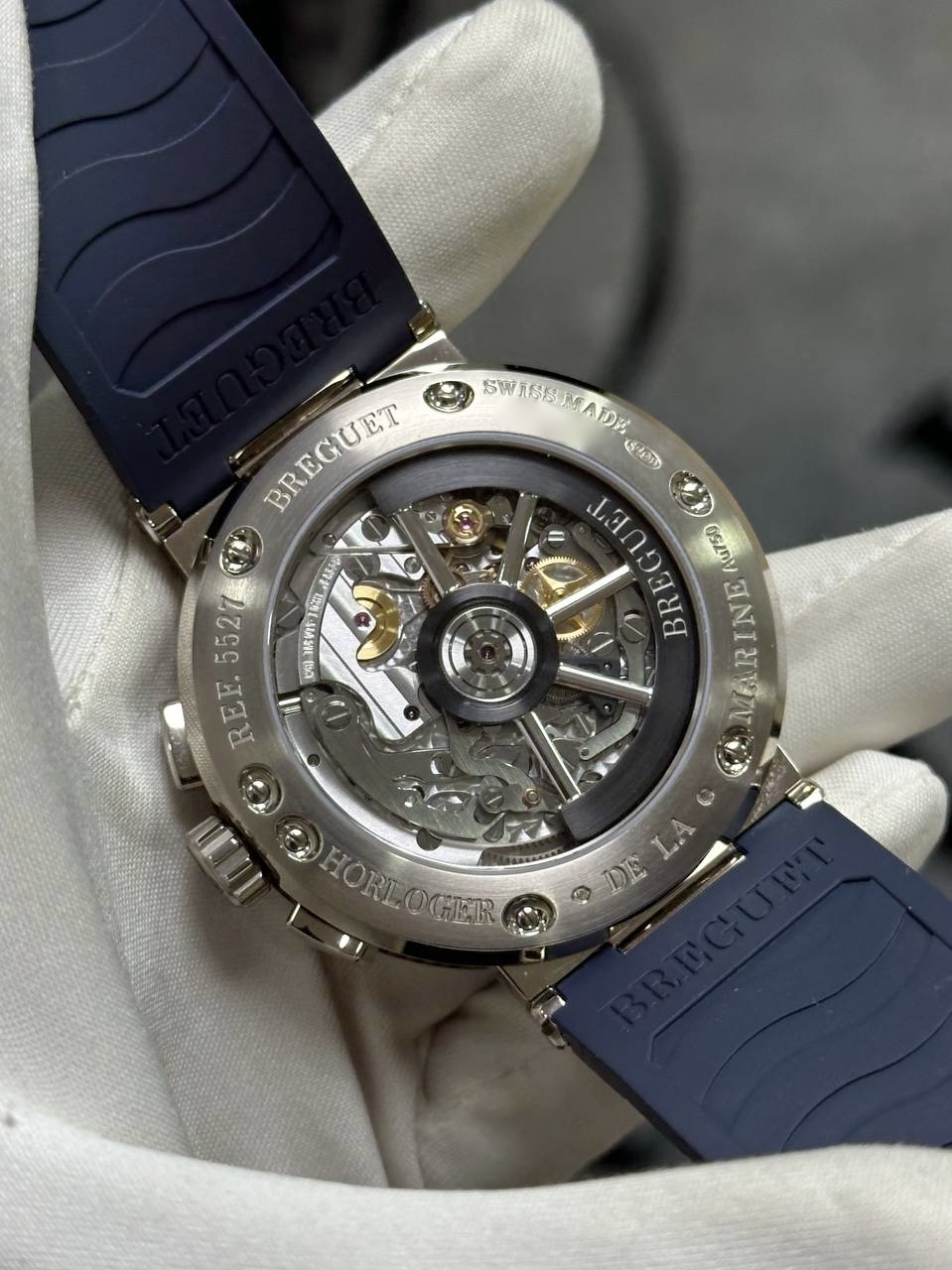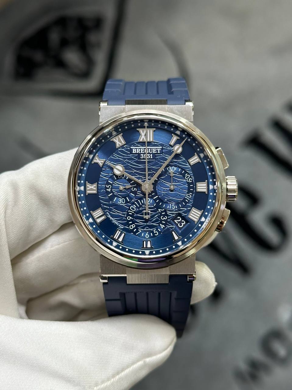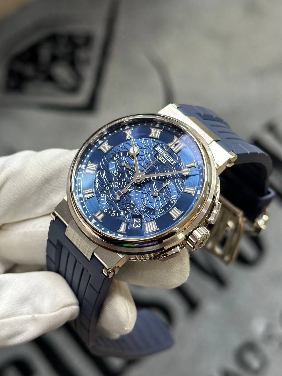 *BREGUET* MARINE CHRONOGRAPH 42.3 ММ 5527BB/Y2/5WV /БЕЛОЕ ЗОЛОТО/СИНИЙ ЦИФЕРБЛАТ/КАЧУК