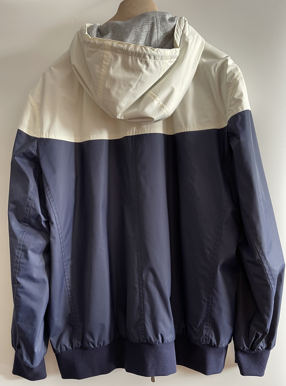 BRUNELLO CUCINELLI новая мужская двусторонняя куртка из водоотталкивающего нейлона с капюшоном на молнии /цвет синий/бежевый/ (54 IT size)