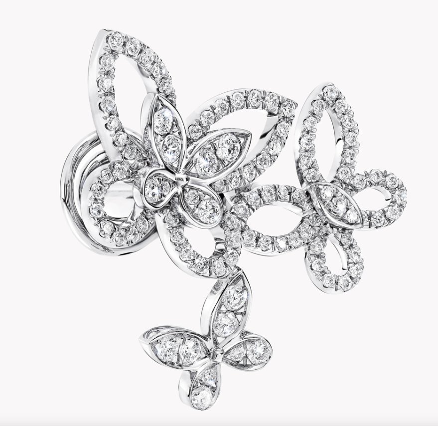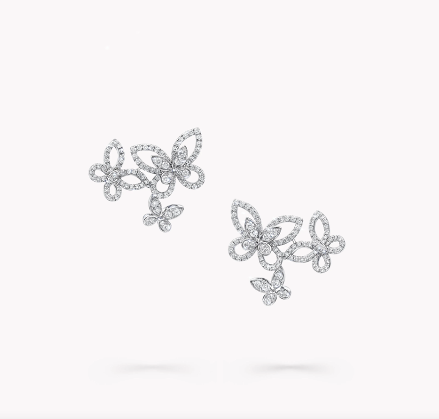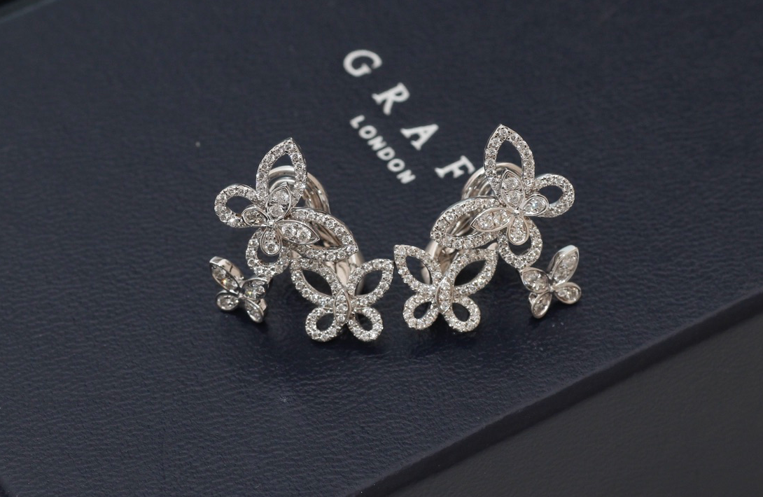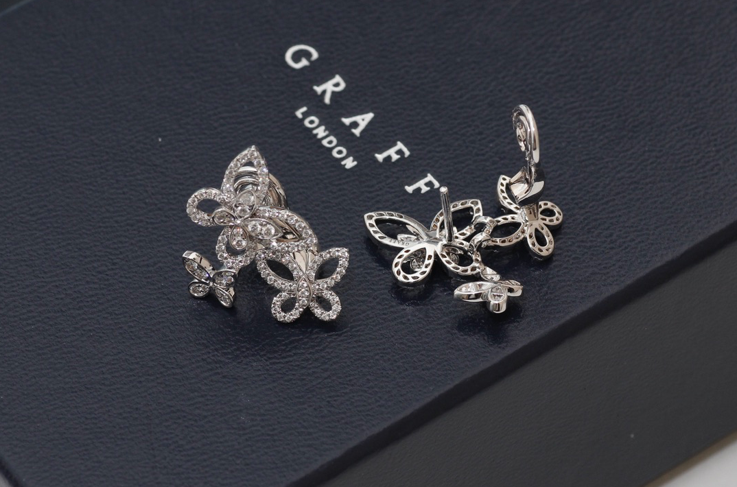 СЕРЬГИ *GRAFF* TRIPLE BUTTERFLY SILHOUETTE DIAMOND EARRINGS RGE1610/ТРИ БАБОЧКИ ИЗ БЕЛОГО ЗОЛОТА В БРИЛЛИАНТОВОМ ПАВЕ 0.85ct