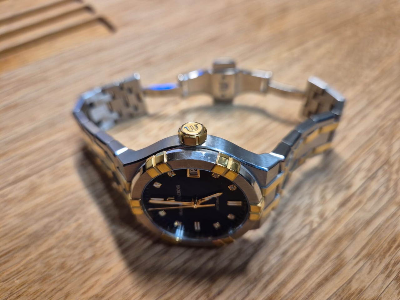 - Корпус и браслет - сочетание матовой, полированной стали и золотых элементов