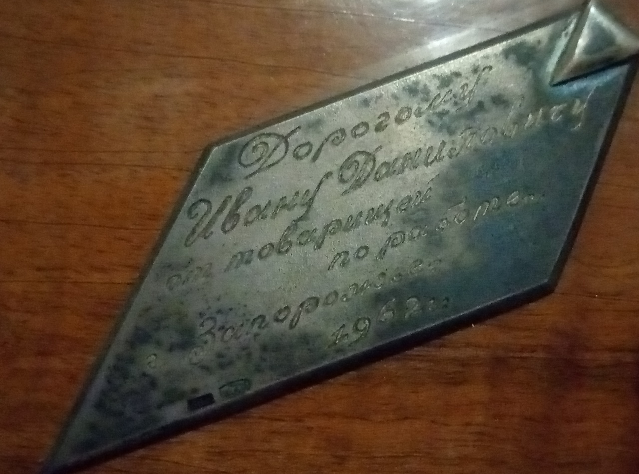 Сохранность собственно предмета, его родословная через сохранившиеся документы, включая квитанции на ремонт с 1978 по 2005 годы- тому подтверждение. И это прекрасно, когда подобная вещь не уехала к передовику сельского хозяйства в колхоз, а попала в должные руки, ценилась и была сохранена до наших дней.