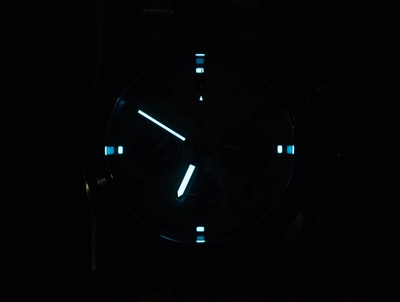 Фирменное яркое люминисцентное покрытие стрелок и меток LumiBrite, бирюзовый цвет