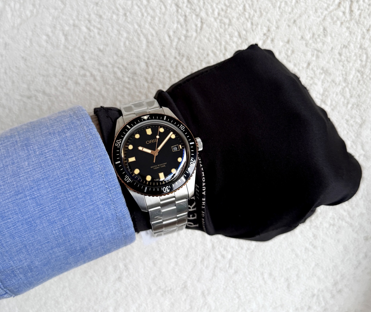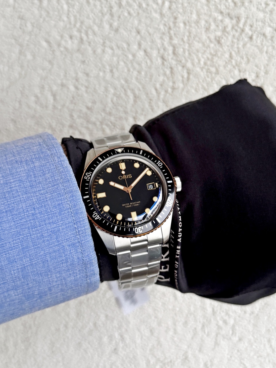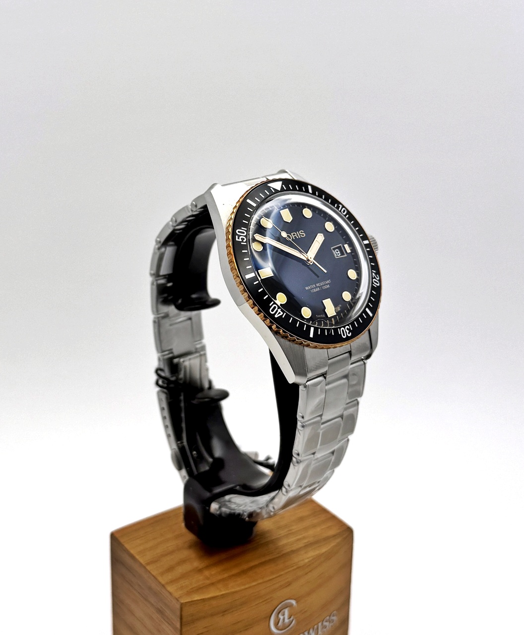 Двояковыпуклое сапфировое стекло с внутренним антибликовым покрытием, задняя крышка со специальной гравировкой, завинчивающаяся заводная головка, швейцарский автоматический механизм, бронзовый безель, всё это соединено в культовых дайверских часах, впервые появившихся в коллекции Oris 60 лет назад. Уникальный дайверский аксессуар в ретро-стиле поворачивает время вспять, позволяя их обладателю стать причастным к незабываемым вехам в истории часов Oris.