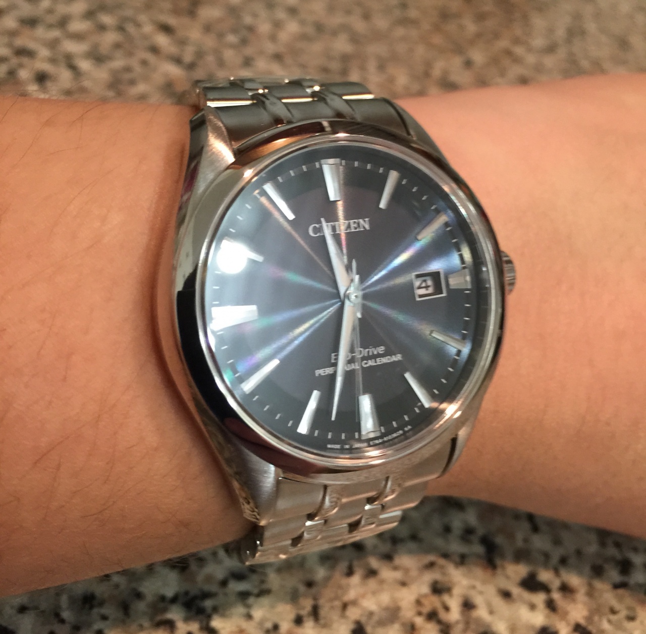 Коротенько - небольшой обзор полученных часов. В принципе - это именно то, что и хотелось. Искал классические часы с тремя-двумя стрелками и датой, с питанием от света, вечным календарем, водозащитной в 100 метров, и черным циферблатом. И как оказалось, что таких часов практически-то и нет в модельном ряду Citizen, да и других производителей. Единственная модель, которая пришла сразу же на ум -