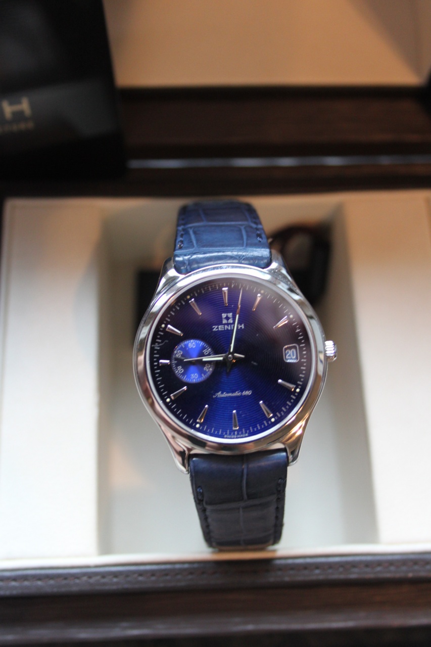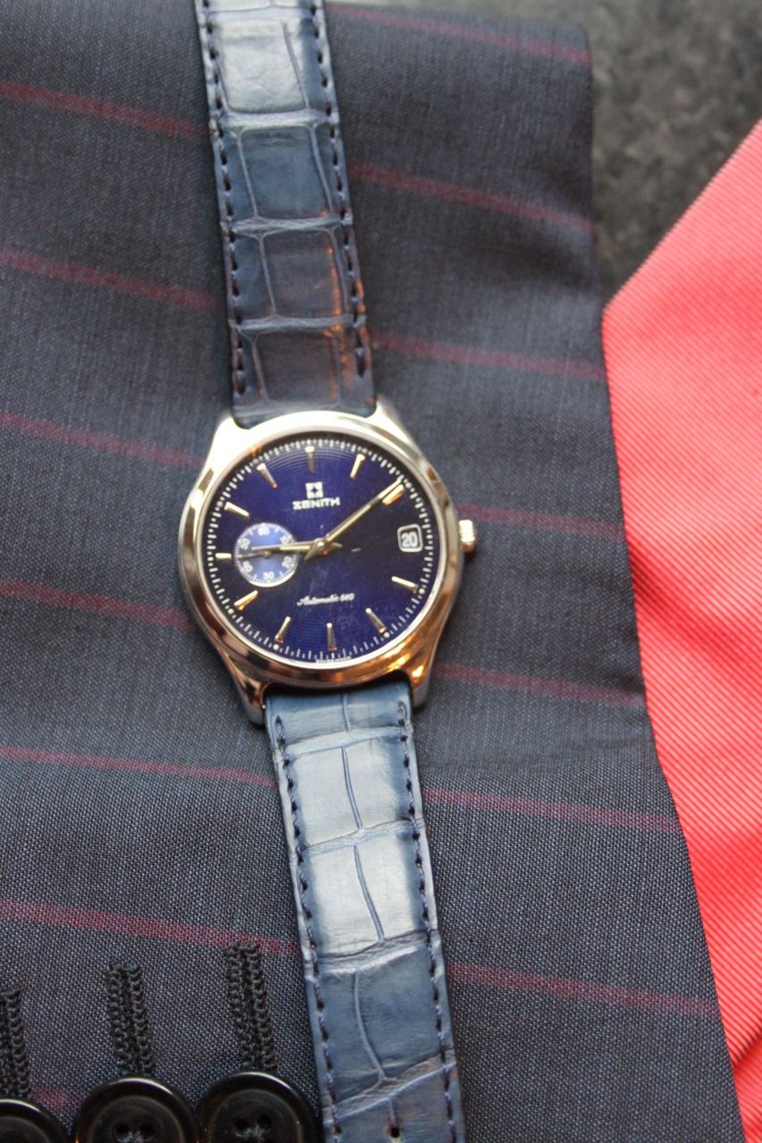 Ремешок: синий (navy blue), крокодиловая кожа, застежка – шип.