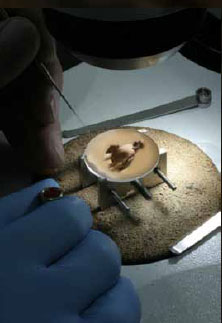 Корнями данная техника уходит в древнеримскую эпоху, но получившую широкую популярность в 18 веке благодаря французскому декоратору Жану-Баптизу Гломи. С 2004 года часовая компания Angular Momentum использует эту уникальную технику в моделях своих часов и является единственной маркой в мире, применяющей это редкое искусство.