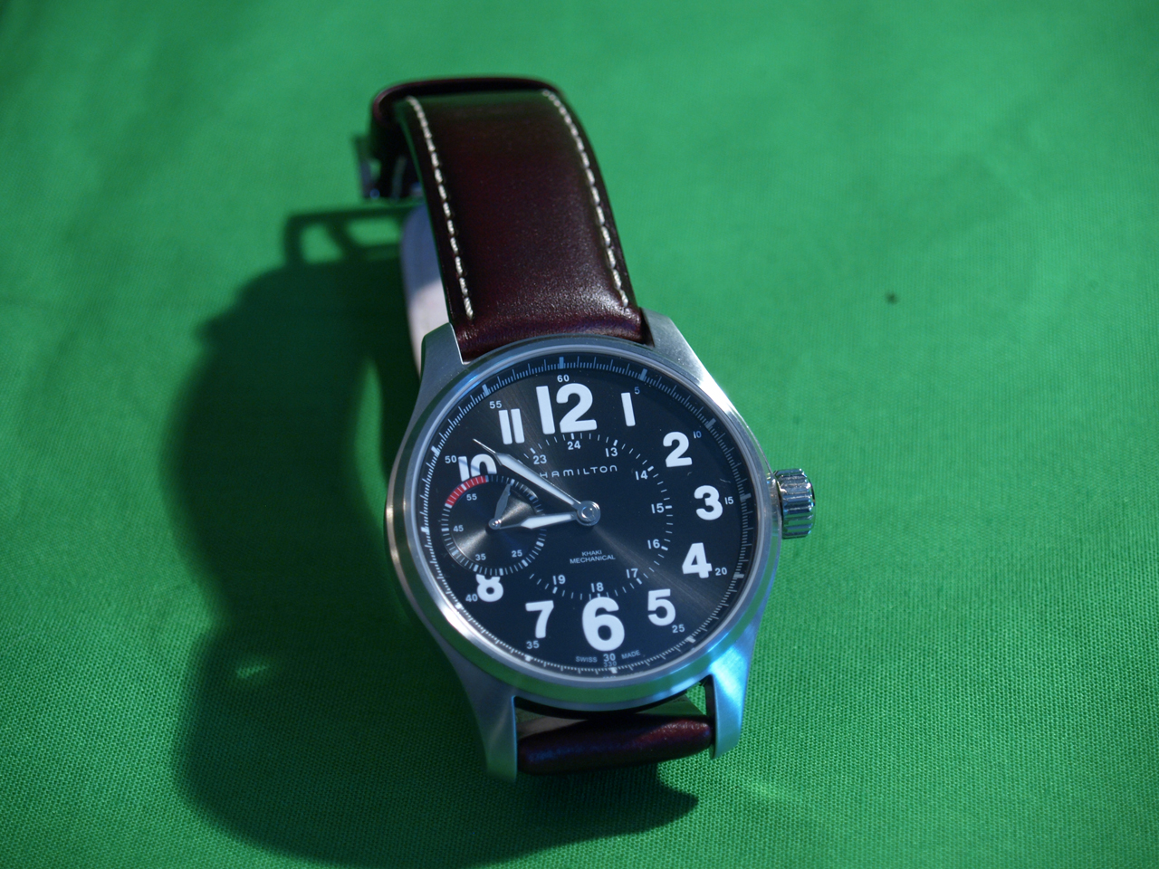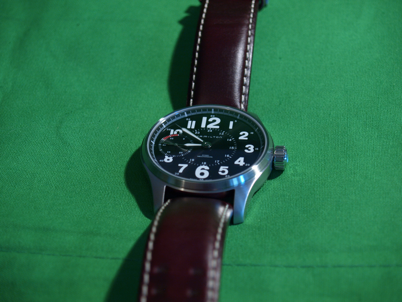 Представляю Вашему вниманию мужские механические часы Hamilton Khaki Field Officer H69619533 в стиле "милитари"; часы швейцарского производства с ручным заводом, черный циферблат, ремень из коричневой кожи, отдельный циферблат для секундной стрелки.