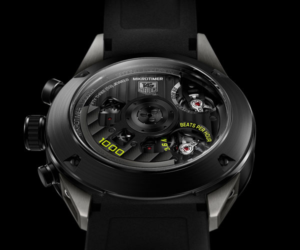 Стопроцентная разработка TAG Heuer, концепт-модель Mikrotimer Flying 1000 Concept Chronograph – основана на конструкции Mikrograph 1/100th и оснащена двумя отдельными системами: механизмом часов, работающем с традиционной частотой 28 000 пк/ч, и сверхскоростным механизмом хронографа с частотой 3 600 000 пк/ч. Конструкция нового хронографа сложна и инновационна. В ней применены одиннадцать принципиально новых решений, на которые компания уже ожидает патенты.