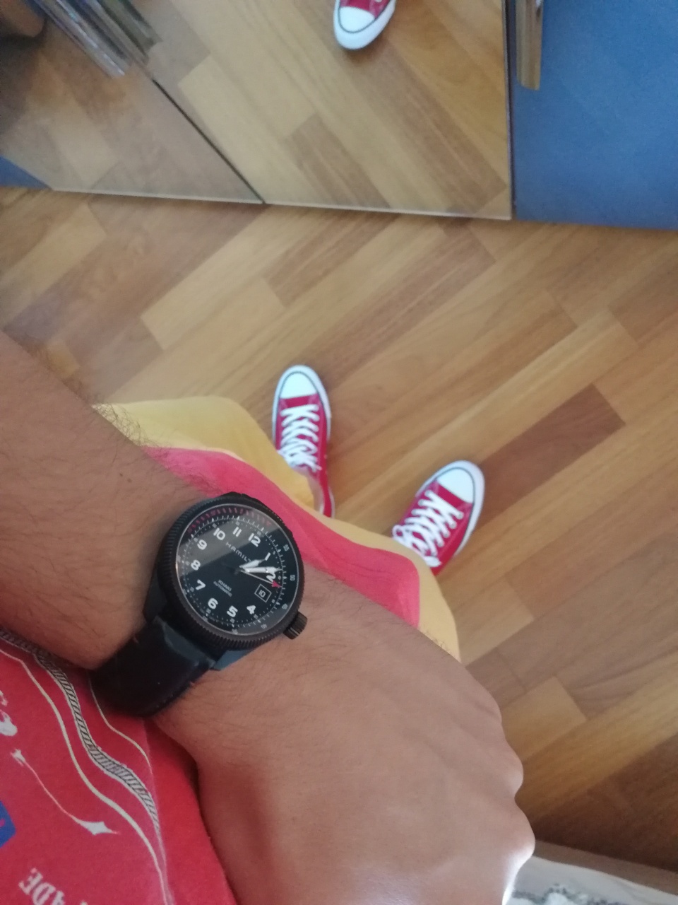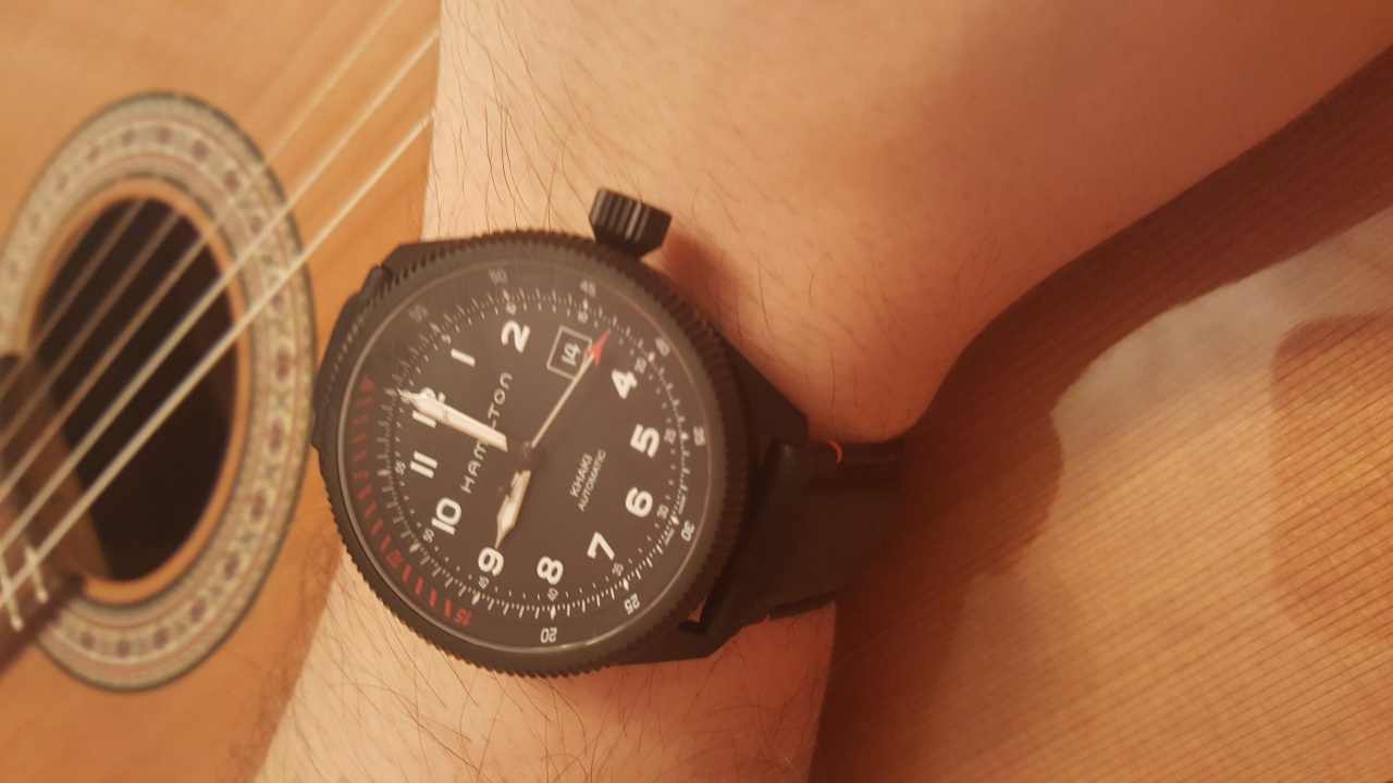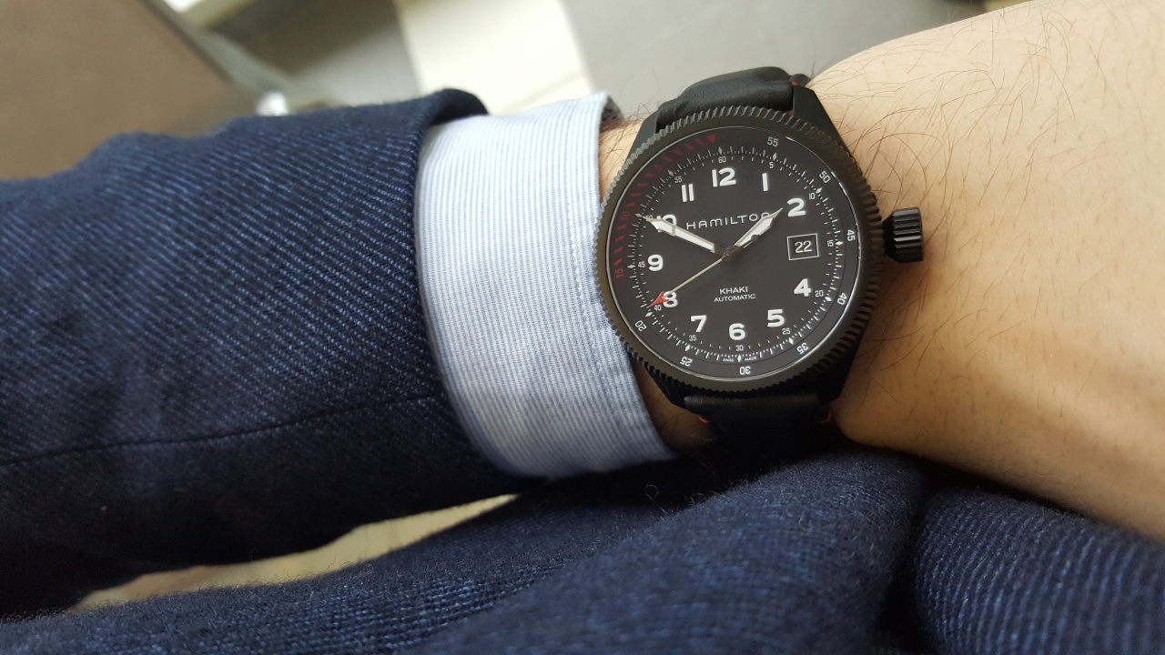 Выбор пал на бренд Hamilton: мне понравились направления дизайна, которые развивает компания. Более того, у знакомого однокурсника в вузе были Hamilton Ventura, и он мне посоветовал присмотреться именно к этому бренду. Из конкурентов рассматривал Oris, но приглянувшаяся модель была уже другой ценовой категории. Увидев модель Khaki Takeoff Air Zermatt, я отбросил все сомнения)