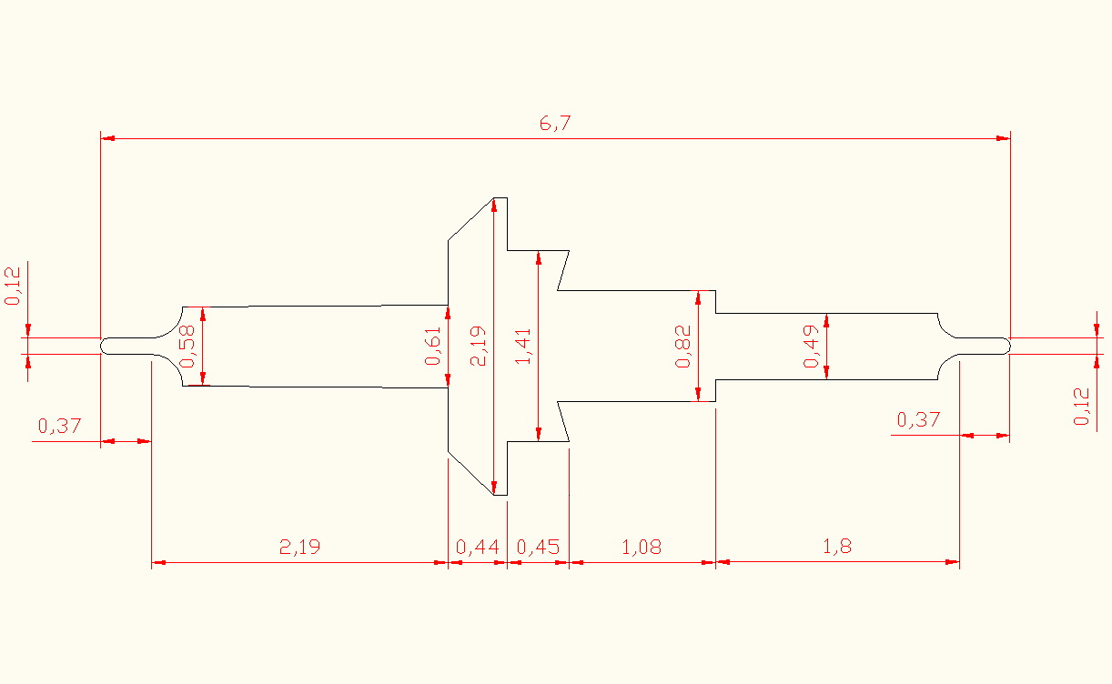 Размеры оси баланса секундомера 2МЧЗ, калибр С-11-1б
