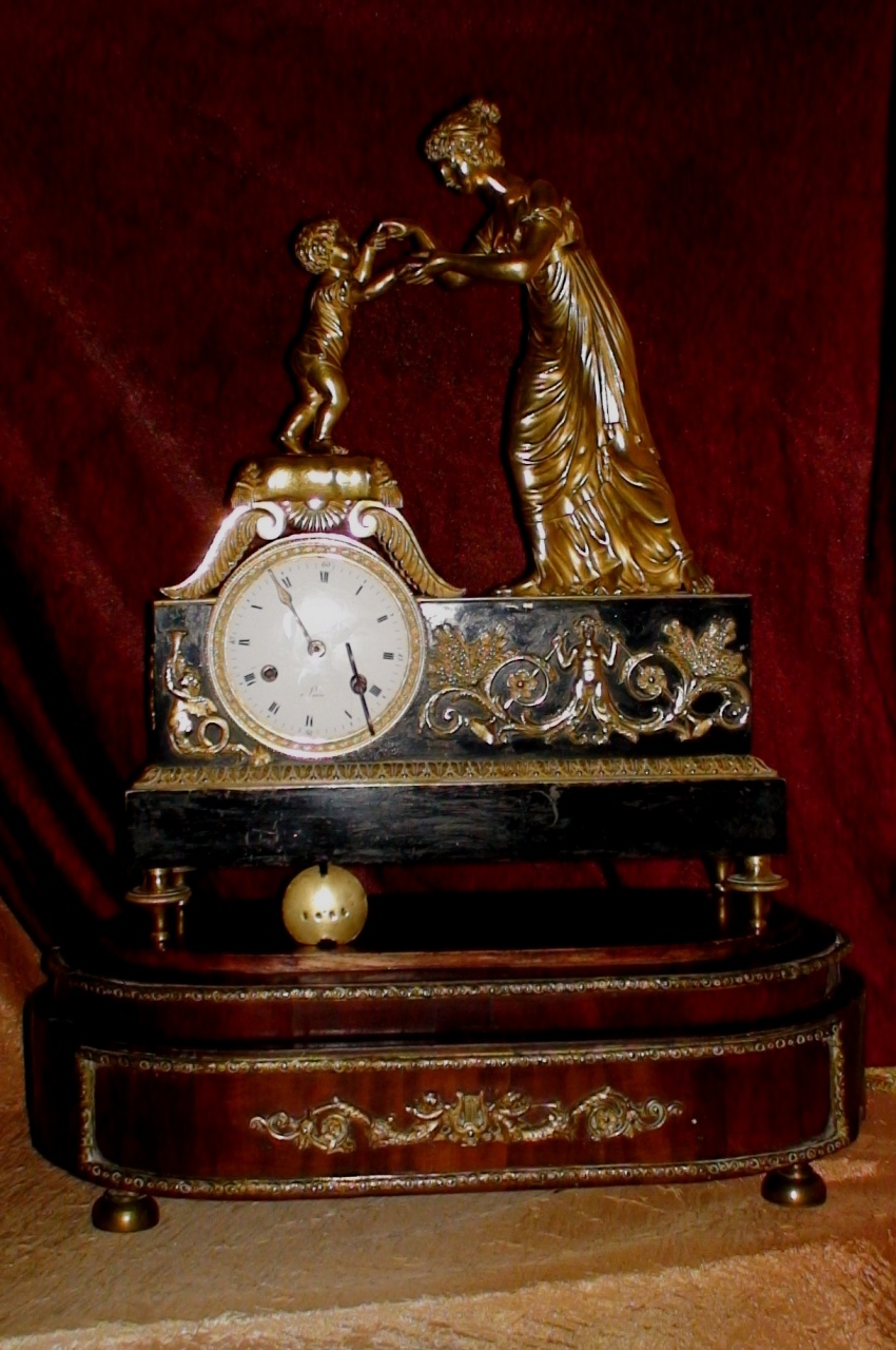 Часы французские, ориентировочно 1800-1810 гг. Увы, не видно состояние механизма. Если предположить, что механизм комплектен и часы на ходу, то 2-3 т$ они стоят.