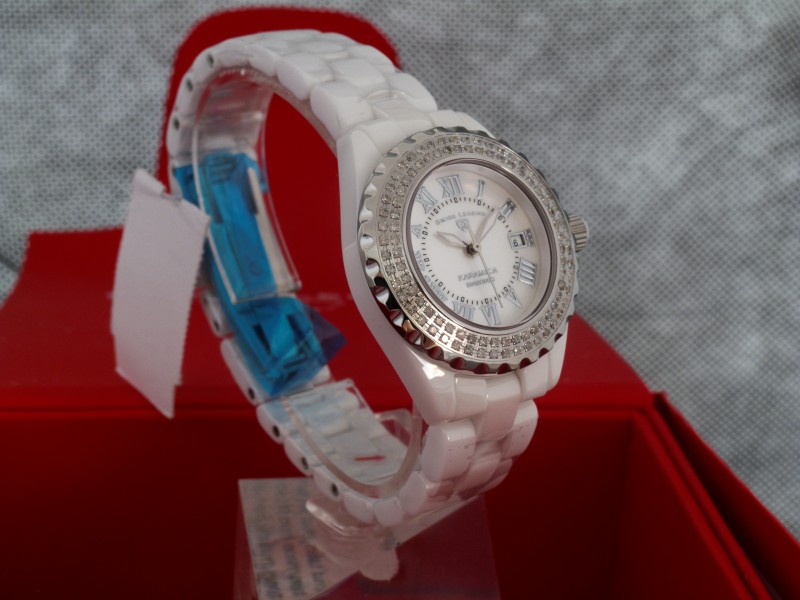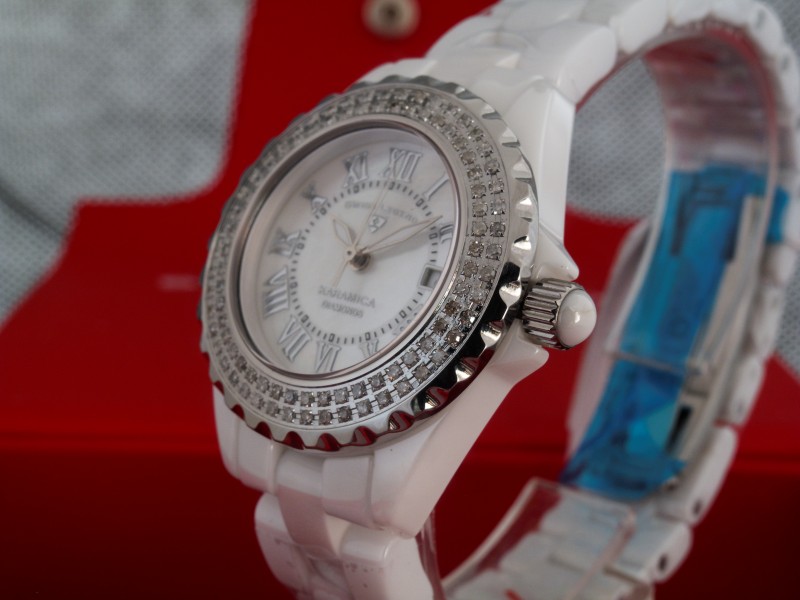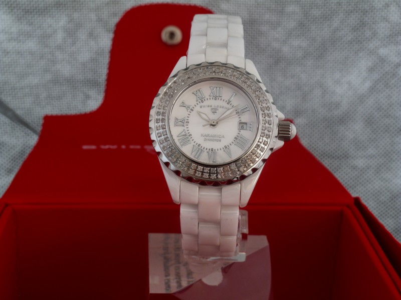 ЖЕНСКИЕ БЕЛАЯ КЕРАМИКА SWISS LEGEND * римские * 34 мм * 96 брилл. 0,8 ct. * WR 100 м.