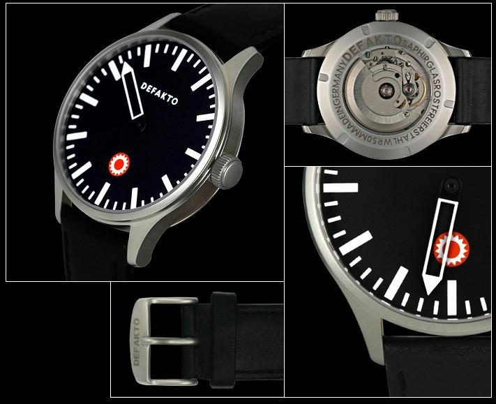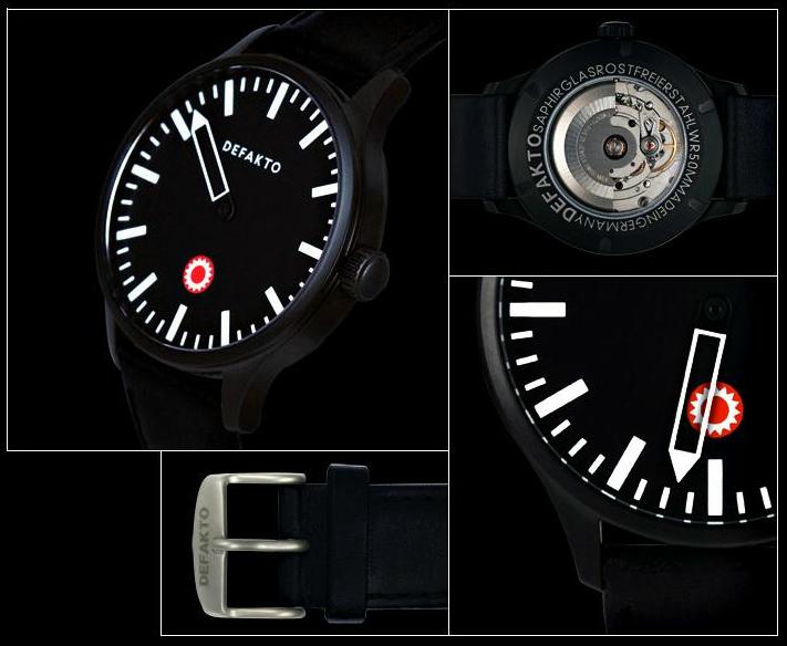 В настоящее время компания представляет две коллекции: Defakto Eins и Defakto Akkord. Первая коллекция включает часы с одной стрелкой, а вторая – с двумя стрелками. Круглые корпуса часов диаметром 42 мм выполнены из нержавеющей стали или из нержавеющей стали с PVD покрытием. Первая коллекция представляет модели с белыми и черными циферблатами, оснащенными одной большой стрелкой и большими часовыми индексами в виде линий, которые покрыты люминесцентным веществом. Часовые метки отличаются от минутных меток своими большими размерами. В положении 12 часов расположен логотип марки. Защищает циферблат часов сапфировое стекло. Дополняют модели кожаные ремешки с мощными застежками с логотипом компании. Часы коллекции Defakto Eins водонепроницаемы до 50 метров. Модели оснащены механическими механизмами ЕТА 2824-2 с автоподзаводом.