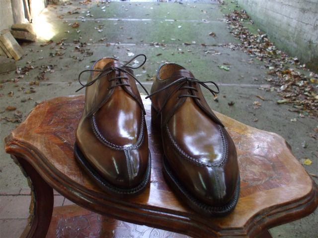 Bontoni. До 2004 года производили обувь только под заказ, с 2004 вышли из подполья на мировой рынок, который быстро освоили. Вообщем, типичная итальянская история, как и у Piergiacomi - не такой платежеспособный рынок и спрос в Италии, как хотелось бы. В день Bontoni производят 10-12 пар, в них понравилось всё - покраска,патина,дизайн,все варианты конструкций,вменяемые цены (от 700 до 1400 евро, минус VAT) для такого уровня обуви.Постучался на офиц.сайт, отправили в Москву (напрямую не торгуют): http://alta-sartoria.ru/ . Цен на сайте нет, да и наверное, дешевле брать в Европе онлайн, где вычитают VAT