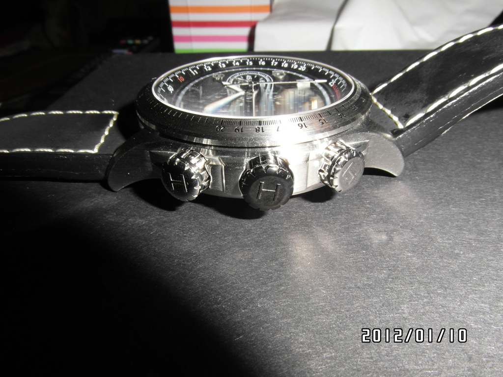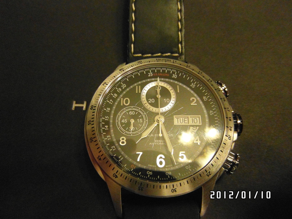 Часами был полностью доволен, шли довольно точно, почти в 0. Но человек я дотошный и вооружившись лупой, стал разглядывать циферблат. И о горе! Что я вижу? А вижу я, как мне вначале показалось микроцарапину с обратной стороны стекла на 9 часов, в пару местах крошечные пылинки, ну а напоследок одну точку после буквы Т в слове Hamilton на цифере.