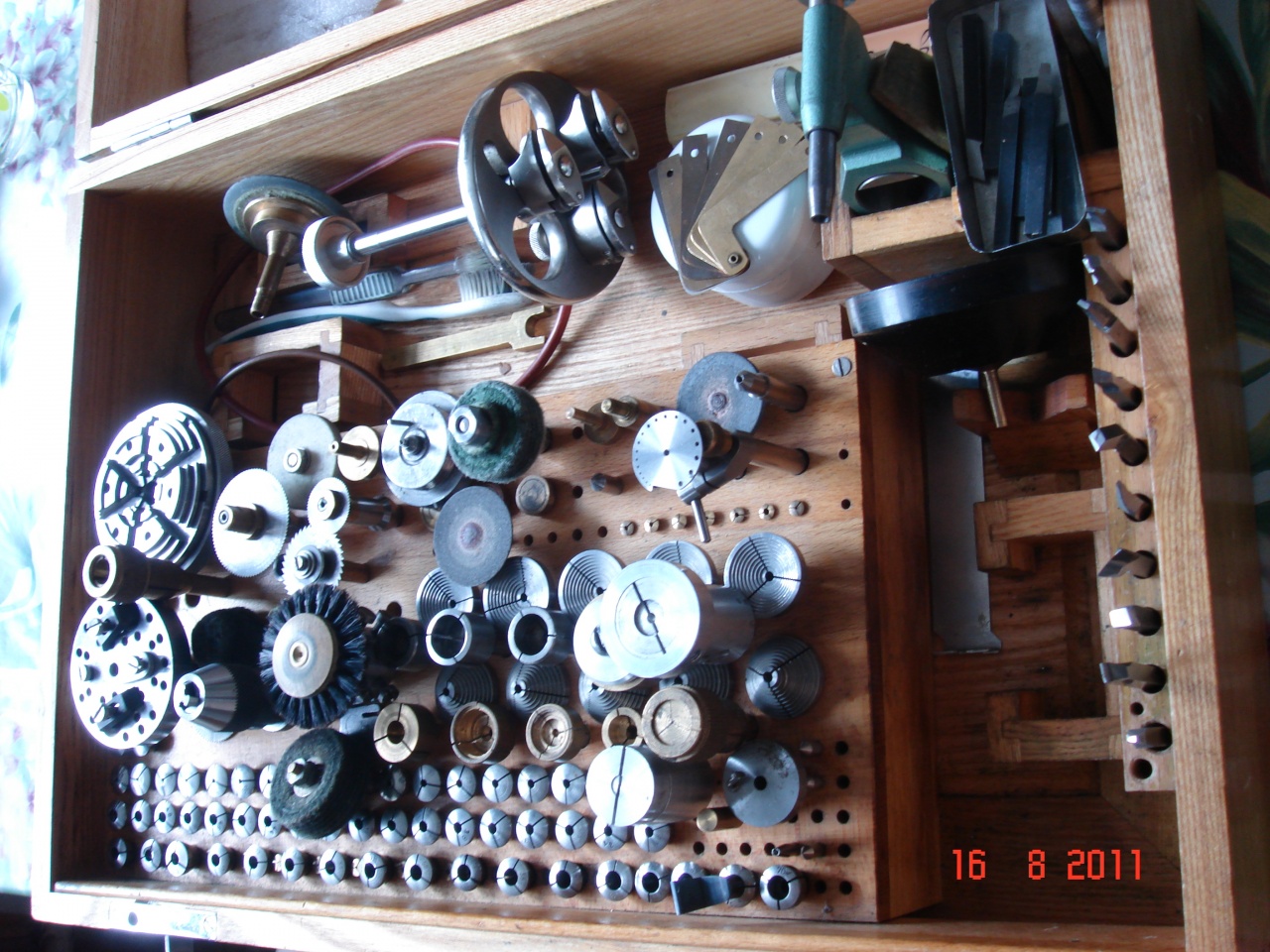 1). Токарный станок Andrä & Zwingenberger в хорошей комплектации и отличном состоянии (домашний, всегда одни руки), на массивном (более 10кг основании). Привод с реверсом. По запросу добавлю стандартную трансмиссию (на 2-х опорах), бинокулярную головку для мелких работ МБС-1 с комплектом окуляров (6-х,8-х,12-х), расходный инструмент (шлицовки, метчики, плашки, сверла) и материал(калиброванный пруток сталь, латунь). Цена 150тр.