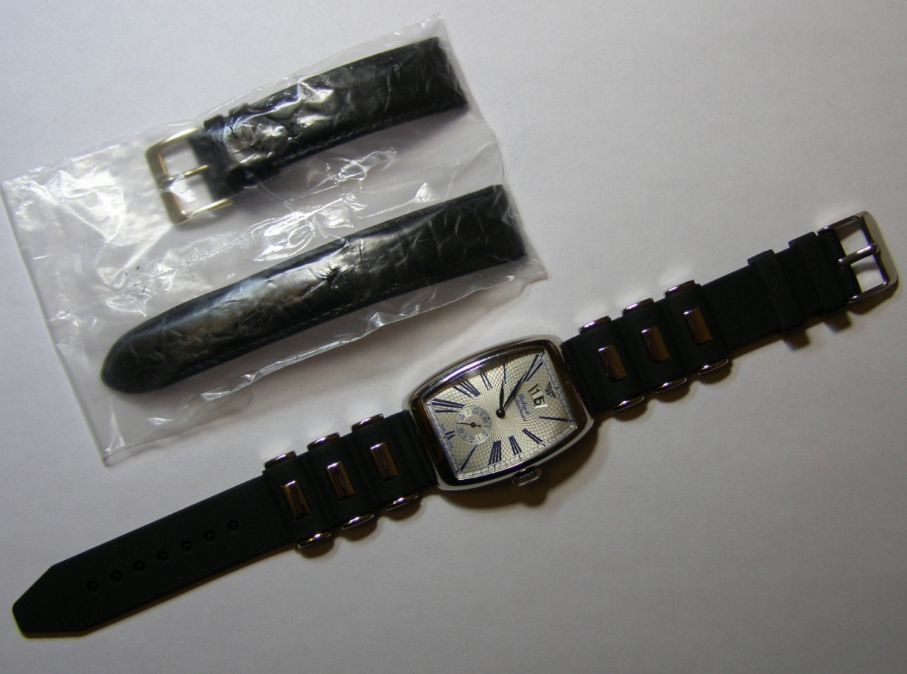 Ремень каучуковый, черный, со стальными вставками, плюс дополнительно черный кожаный ремешок, ширина обоих ремней 20мм. Коробки и документов не сохранилось.