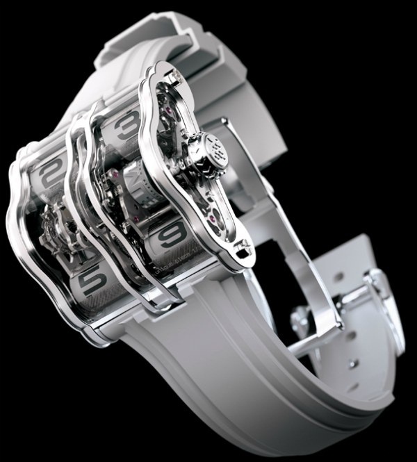 Корпус новинки в чем-то напоминает корпус моделей Cabestan, внешне "разделен" на два блока, будет выполнен из титана, платины, белого или розового золота, длиной 50 мм, шириной 41 мм, в "окнами", защищенными сапфировым стеклом.
