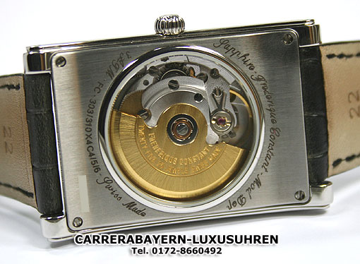 Механика с автоподзаводом, гильошированный циферблат с римскими цифрами, стрелки часов в стиле Breguet, ремешок из кожи крокодила, сапфировое стекло с антибликовым покрытием, прозрачная задняя крышка из сапфира на винтах. Подробная информация на официальном сайте.