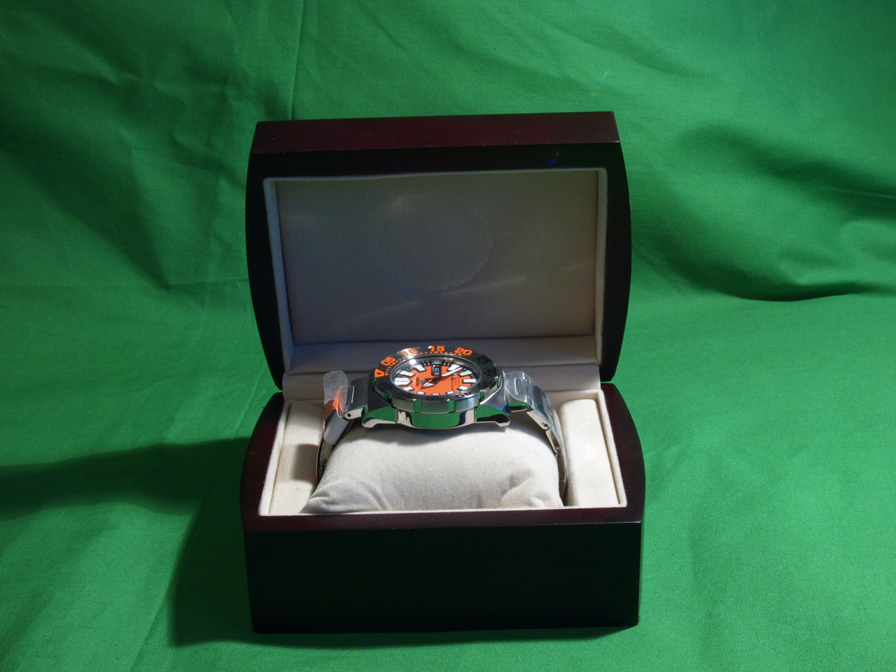Часы идут в неоригинальной деревянной коробке для хранения, без документов; тем не менее, они новые и пленки не снимались никогда. Как и всегда, фотографии сделаны именно с того экземпляра, который Вы и получите в итоге.