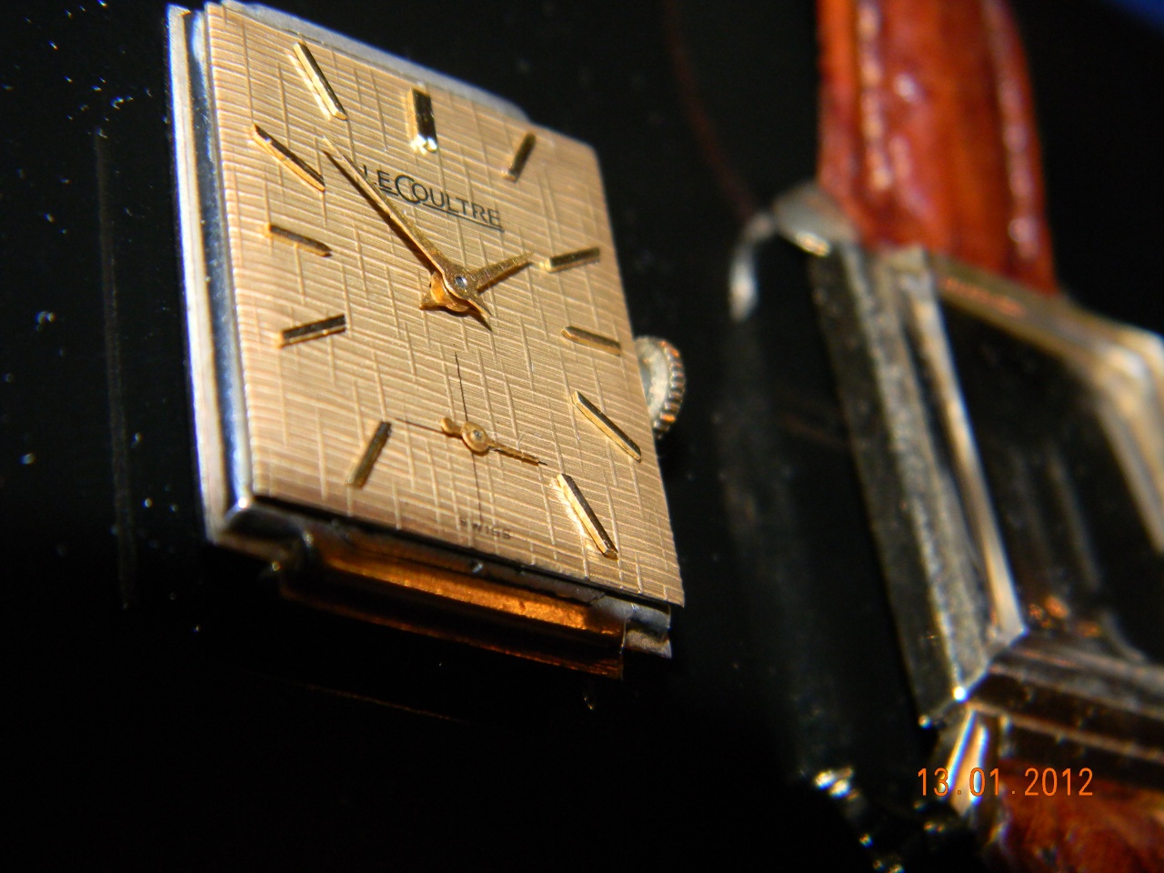 http://www.ranfft.de/cgi-bin/bidfun-...ltre_438_4C_Am. Очень интересный и редкий. Сами часы выполнены очень претенциозно. Циферблат выполнен в виде золотого плетения. Золотые стрелки, суб секунда. 10 каратное золотое покрытие. Оригинальное внутреннее клеймо, cased by Le Coultre, двойные индексы цифр.