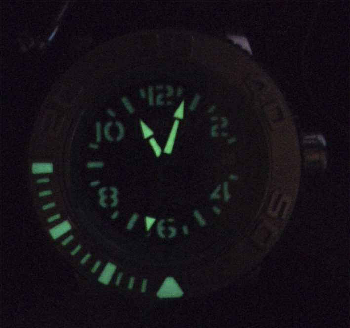 Механика-автомат. Swiss made. Швейцарский механизм ETA A07.171. GMT (второй часовой пояс). Водонепроницаемость 300 метров. Двухцветный кожаный ремень (внутри синий, снаружи чёрный).