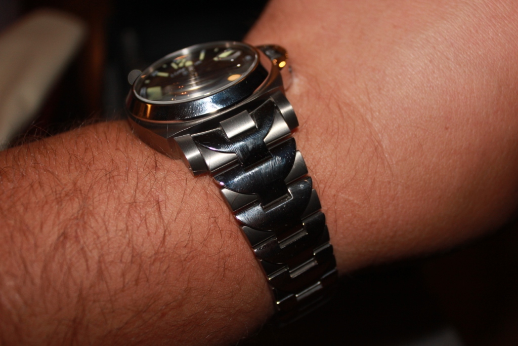 Где я , и где " Лувр " ? 2000 км холодной и заснеженной предновогодней Росии разделяло нас . И где - то там , в мерзлых лабиринтах чужого , огромного и дышащего баблом города , переливался сиянием он , браслет старого образца , а на нем , как влитые , были усажены ОНИ : титан , в " старом " корпусе , полированно - сатинированные , с функцией ГМТ , с шикарным серебристым " озером "на секундной стрелке , но больше всего произвели впечатление мускулистые , толстенькие ( прекрасно гармонирующие с моим немаленьким лицом ) , стрелки .