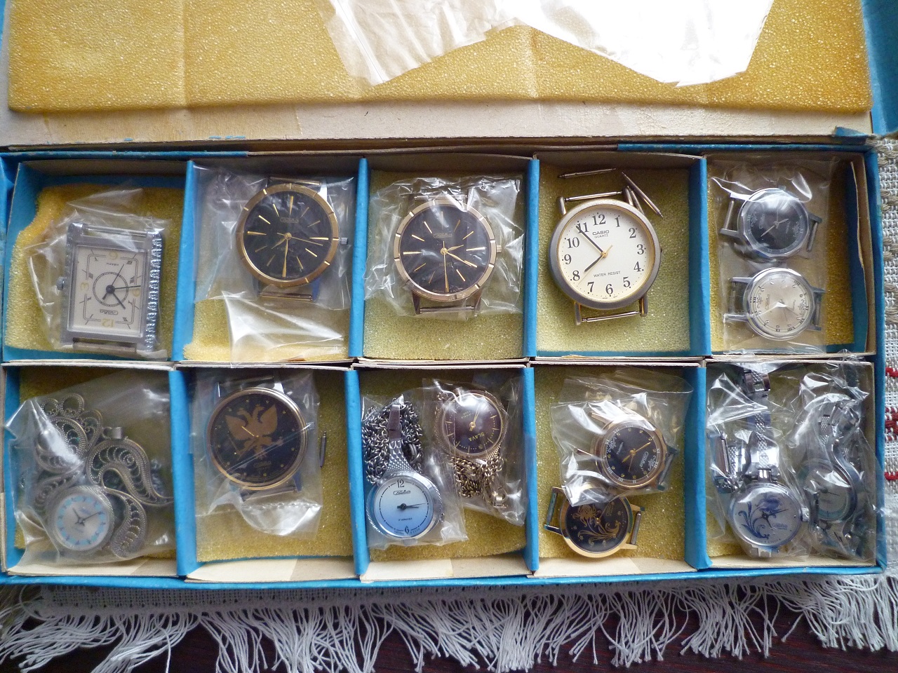 56шт.: Maurice Lacroix, Epos, Bulova, Seiko, Orient (3), Citizen, Armani, Океан, Авиатор, Полет (3), Родина, Спутник, Урал, Восток (6), Ракета (13), Слава (4), Чайка (3), ЗиМ, Победа, Заря (2), Луч, Дружба, Молния и тд... Два года скромного хобби