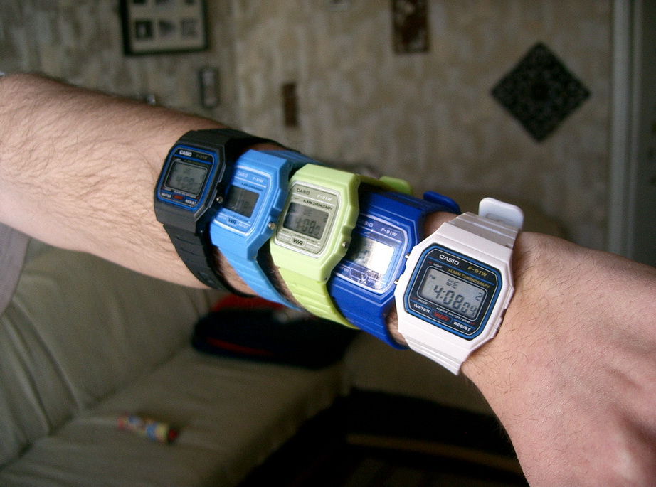 Электроники, Casio W-756D, MTP-1219A, A164WA-1V, AQ-160WD-1B (tide-moon mod), W-S200HD-1A, F-91W-1Y