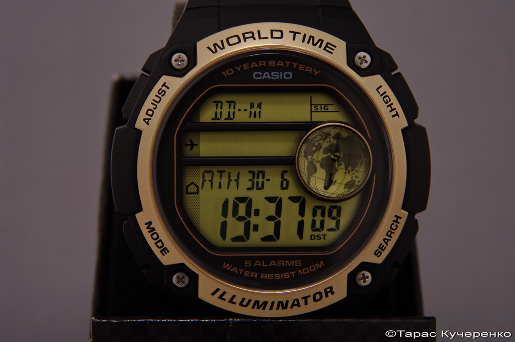 Нажатие правой нижней кнопки меняет часовые пояса. Были Афины основным временем выставлены, стал Лондон