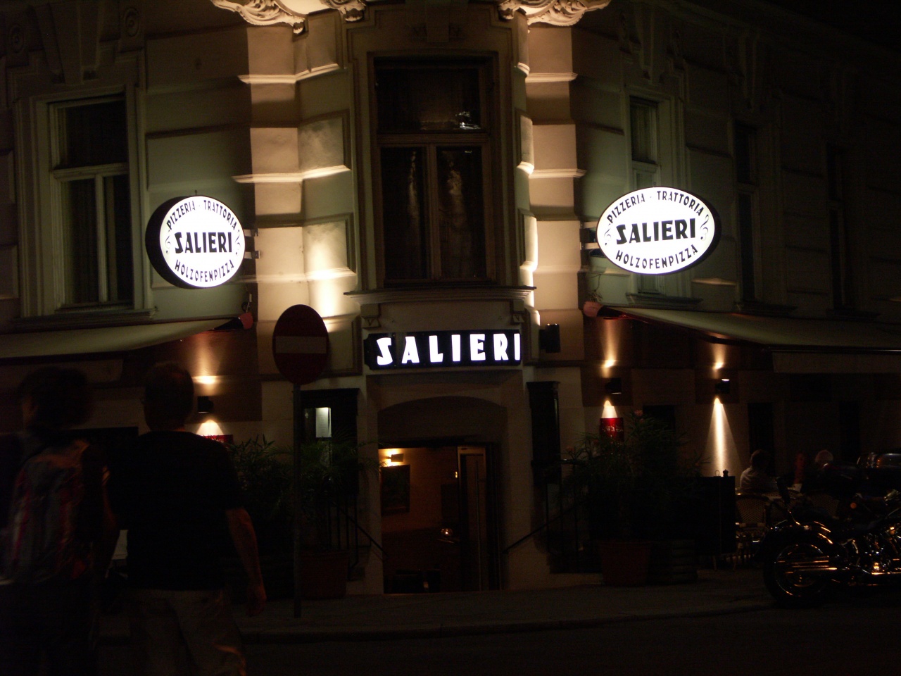 Бельведер, как известно, бывает Верхний и Нижний. В смысле один немножко на горе, второй - слегка под. Народ, погуляв по парку, охренев от увиденного, и охренев вдвойне от осознания личной причастности к пейзажу, выходит из ворот нижнего Бельведера (в горку выходить лениво ибо) и идет налево (центр города с пивом и сувенирами там ибо). А вот идти надо как раз направо. Буквально через сто метров, по адресу Rennweg 8, случается одна из старейших пивоварен Вены. (Для ориентира – напротив магазин с вывеской «OMEGA», под которой вывеска SEIKO). Здесь варят свое пиво, гонят свой шнапс и жарят свои ребрышки. Ну не свои, а своих свиней конечно. Как всегда: на улице раухен, в помещении – нищт раухен. По ценам: порция жареных ребер (одного блюда на двоих хватит, останется даже ранее упомянутой тете Песе в пакетике унести) – 13.90 евро. Вяленая оленина (так, чтобы чем-то заняться, пока принесут ребрышки) – 7.90. Большой чесночный тост (черный тонкий хлеб, обжаренный в масле, потертый чесноком, посыпанный зеленью, порезанный на куски, положенный на тарелку и принесенный прям к столу) – 3.50. Что еще? А! Вот что надо брать: монастырская сковорода. Грибная смесь с телятиной – 13 евро, на евро дороже – охотничья сковорода. То же самое, но вместо телятины – дичь. Дикая до ужаса свыня. Кабан. И все это под брусничным соусом. Одна сковорода естся вдвоем. Из того, что обязательно нужно взять – суп-крем с чесноком и беконом, а также баварский пивной суп с сыром. Что-то в районе трех евро одно и другое. Шнапсов четыре: абрикосовый, грушевый, вишневый и фруктовый. Берем абрикосовый (марилиен) - он самый афигенский. Как видите, основную часть работы (выбор) я уже сделал. Тем, кто поедет следом, останется самая малость. В общем, натолкнувшись один раз на этот оазис щястя, полностью называемый Salm Brau Klosterbrauerei, вылезать оттеда не хочется. Потому все вечера безоглядно были отданы на откуп Сальму. Порции шнапса, правда, детские. 20 грамм – 2.50. Только рот пачкать. Выход один – надо брать маленькие порции, но много. И не забыть пиво для запивания. Как говорят австрийцы: «Bier ohne Schnapps – Geld auf den Wind». Ну, мне показалось, что они говорят именно так.