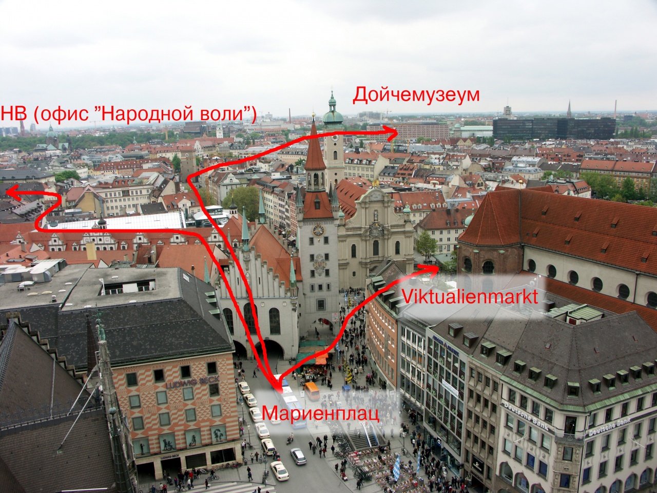 Для тех, у кого мало времени, В Мюнхене существуют только три дороги. Все начинаются в центре, у Мариенплац. Становимся к основной религиозно-административной постройке (старая ратуша) левым боком и всматриваемся в другую постройку (новая ратуша), торчащую впереди. В ратуше арка. Если идти долго и прямо, попадешь на берег реки Изар, за которым имеется здание немецкого технического музея – дойчемузеум. Запоминаем направление, ведь дома чего-то придется рассказывать, как провел время, куда делись деньги, почему приперся пьяным. В музее был. Нет вопросов. В музей не идем, а после арки поворачиваем направо. Это Виктуалиенмаркт, мюнхенский рынок. Точек, которые нужно посетить обязательно, три, запоминаем: