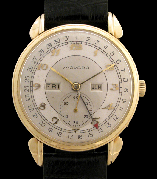 Movement: High grade complicated triple date manual wind movement signed Movado Factories, 17 Seventeen Jewels, Unadjusted, Swiss. Caliber 475.