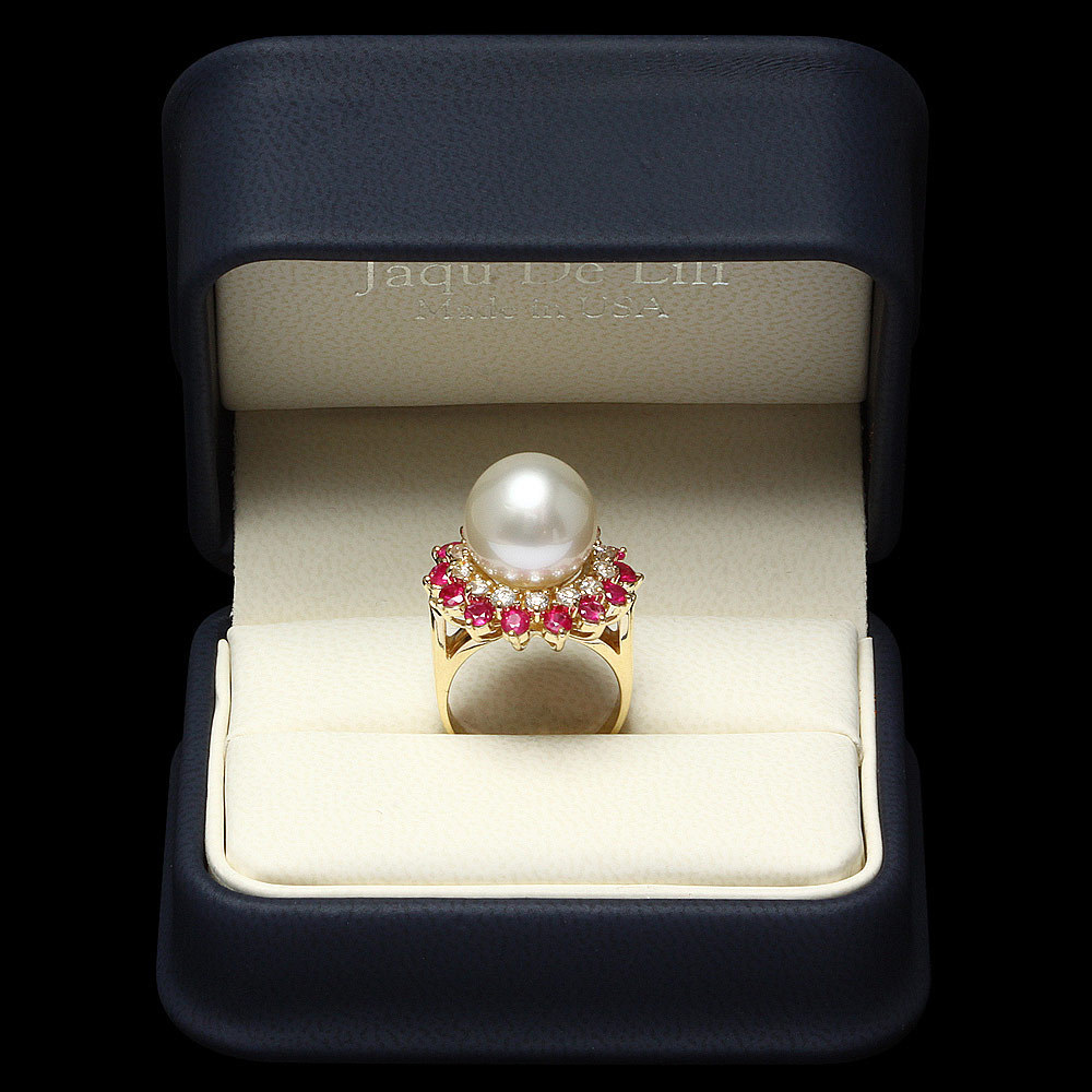 Кольцо Jaqu de Lili с жемчугом, рубинами и бриллиантами.