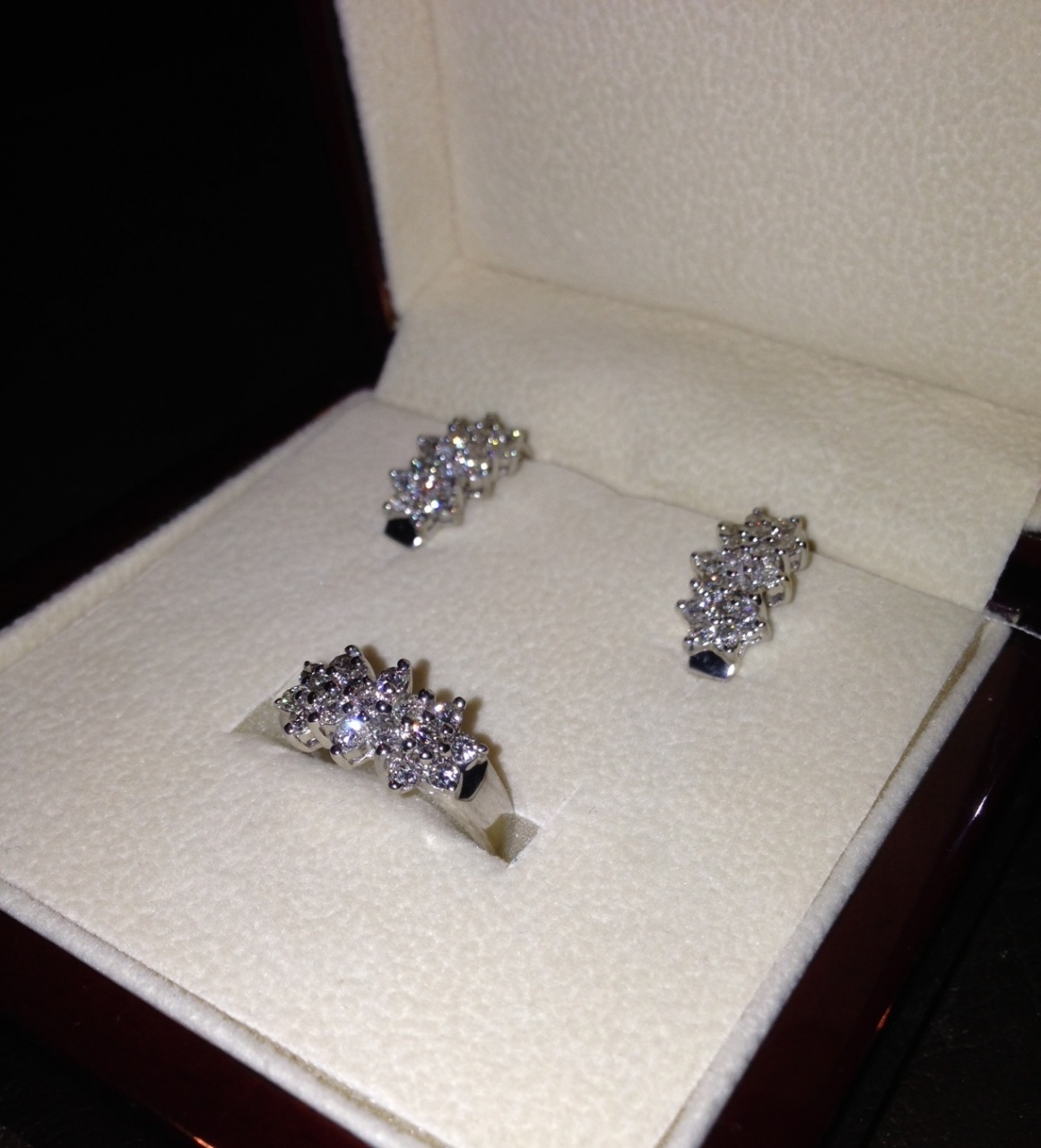 ~~~Комплект серьги и кольцо "Цветы"~~~Белое золото~~~Бриллианты 1,7 карата