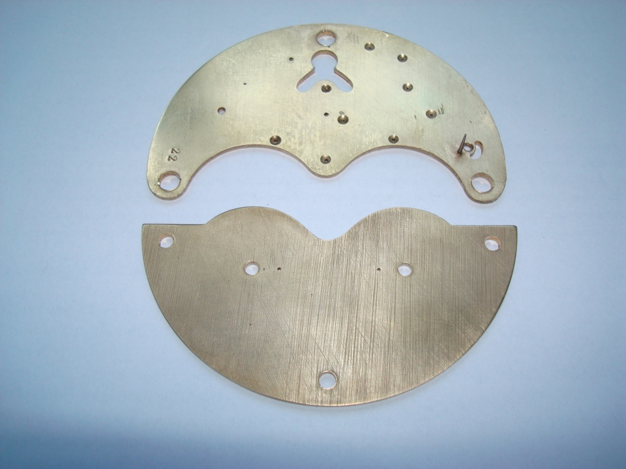 Во-первых, не был устойчивый ход на ровной горизонтальной поверхости. После наклона в бок, ход становился устойчивым. Я снял крепление анкера вместе с узлом регулировки точности хода, вынул анкер и обнаружил, что крепление поводка маятника допускает вращение вокруг оси анкерной вилки. Что я и сделал, добившись устойчивого хода. Во-вторых, узел боя и проигрывания мелодии требовал профилактики и настройки. Была заменена кожа в молоточках, установлена отсутствовавшая латунная шайба. Это приводило к тому, что 3-й молоточек перемещался вдоль оси во время боя и задевал 2-й. Впринципе, мелодия была, но это было не то, что нужно. Также было небольшое различие во времени между нотами, что тоже не хорошо. Это было обусловлено 2-мя обстоятельствами: контактные площадки молоточков не находились на одной оси и некоторые зубья музыкального барабана были подогнуты. С первой проблемой я справился, а вот проблему с зубьями до конца не решил. Я подправил только один из них, Остальные не стал трогать во избежание поломки. И, по традиции, очистка стрелок вернула им превосходный синий цвет. Часы заняли своё место на дубовом камоде, образуя с ним великолепную композицию.