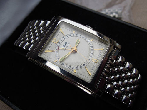 В общем ОРИС, времен так 90-х годов, на ЕТА, со стрелочным указателем даты. Ход держат очень хорошо. Сталь, есть следы носки, но в целом очень хорошее состояние.