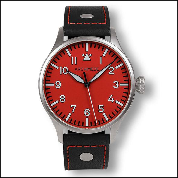 Дизайн новой модели Pilot 42 от немецкой часовой компании Archimede выполнен в классическом пилотском стиле. Она выпускается в нескольких версиях: в сатинированной нержавеющей стали, в нержавеющей стали с черным PVD-покрытием и с циферблатами красного, белого и синего цвета.