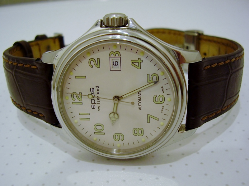 Декорированный механизм ETA 2824-2, указатель даты, прозрачная задняя крышка, серебристый циферблат.
