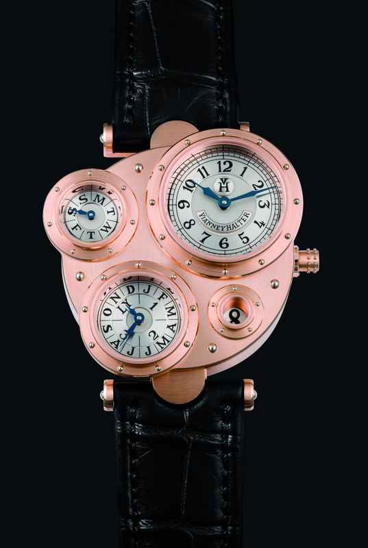 Первая коллекция Хальтера представляет собой современный взгляд на морские хронометры. Вечный календарь решен в очень нестандартной манере, но при ближайшем рассмотрении довольно удобной. Корпус предлагается в трех видах золота и в платине.