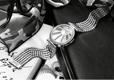 Часовой бренд Piaget предлагает новинку 2009 года – часы с асимметричным дизайном Limelight Twice. «Скромный» вид часов заинтересует любителей драгоценностей: они буквально состоят из бриллиантов круглой огранки.